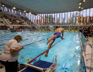 Charlotte Dirkes (Jahrgang 2009) zeigte in ihrem Einzelrennen über 50 Meter Rücken eine herausragende Leistung. In der Juniorenwertung belegte sie in 00:32,00 min den 21. Platz und unterbot damit ihre Bestzeit um über eine Sekunde. Nach langer Verletzungspause ist dieser Leistungssprung umso beachtlicher.